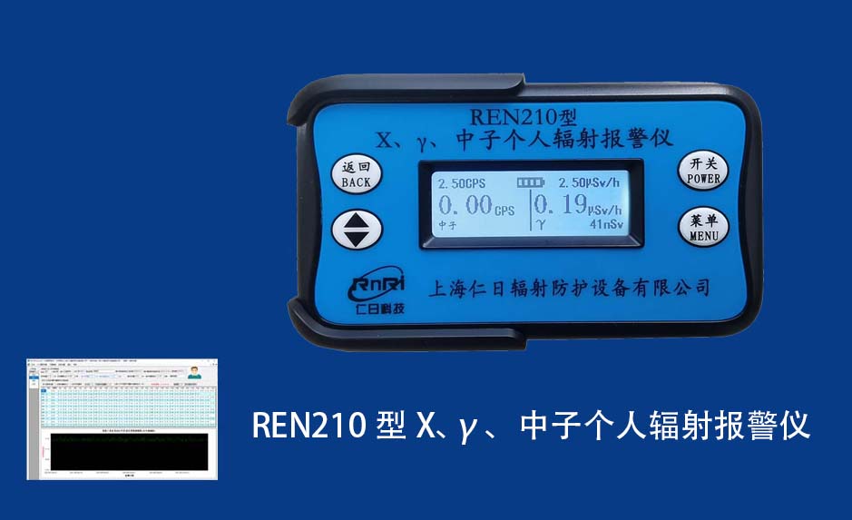 REN210型X、γ、中子個(gè)人輻射報(bào)警儀內(nèi)置SiPM和鋰玻璃晶體組成中子探測(cè)器儀器,采用反照率方式探測(cè)中子射線,同時(shí)也能探測(cè)X、γ射線。因此它可同事監(jiān)檢測(cè)X、γ、中子三種射線。能顯示工作場(chǎng)所的劑量當(dāng)量率和累積劑量,更換電池時(shí),日期及累積數(shù)據(jù)能永久保存?蛇x配RenRiPersonal個(gè)人劑量管理軟件,該軟件可存儲(chǔ)多個(gè)人的歷史數(shù)據(jù),能記錄日累積、月累積、年累積、輻照時(shí)長(zhǎng)、計(jì)算平均劑量率、扣除或不扣除本底輻射,且以文字和圖譜的方式展現(xiàn)數(shù)據(jù)。廣泛應(yīng)用于環(huán)保、化工、水泥、煤礦、土木工程、石油、醫(yī)院、疾控、進(jìn)出口商檢、核電、加速器、機(jī)場(chǎng)、中子源庫(kù)和其他安檢、邊境控制海關(guān)檢測(cè)等領(lǐng)域中的工作人員進(jìn)行個(gè)人安全防護(hù)監(jiān)測(cè)及放射性提示。